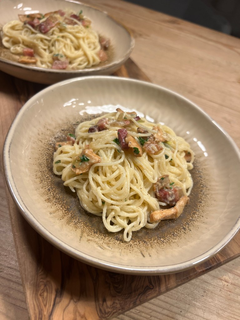 Cremig, herzhaft und voller Waldaromen: Semmelstoppelpilz Carbonara verbindet fein nussige Pilznoten mit einer samtigen Sauce und krรคftigem Kรคse. Eine elegante, Interpretation des Klassikers โ intensiv im Geschmack und wunderbar bodenstรคndig.