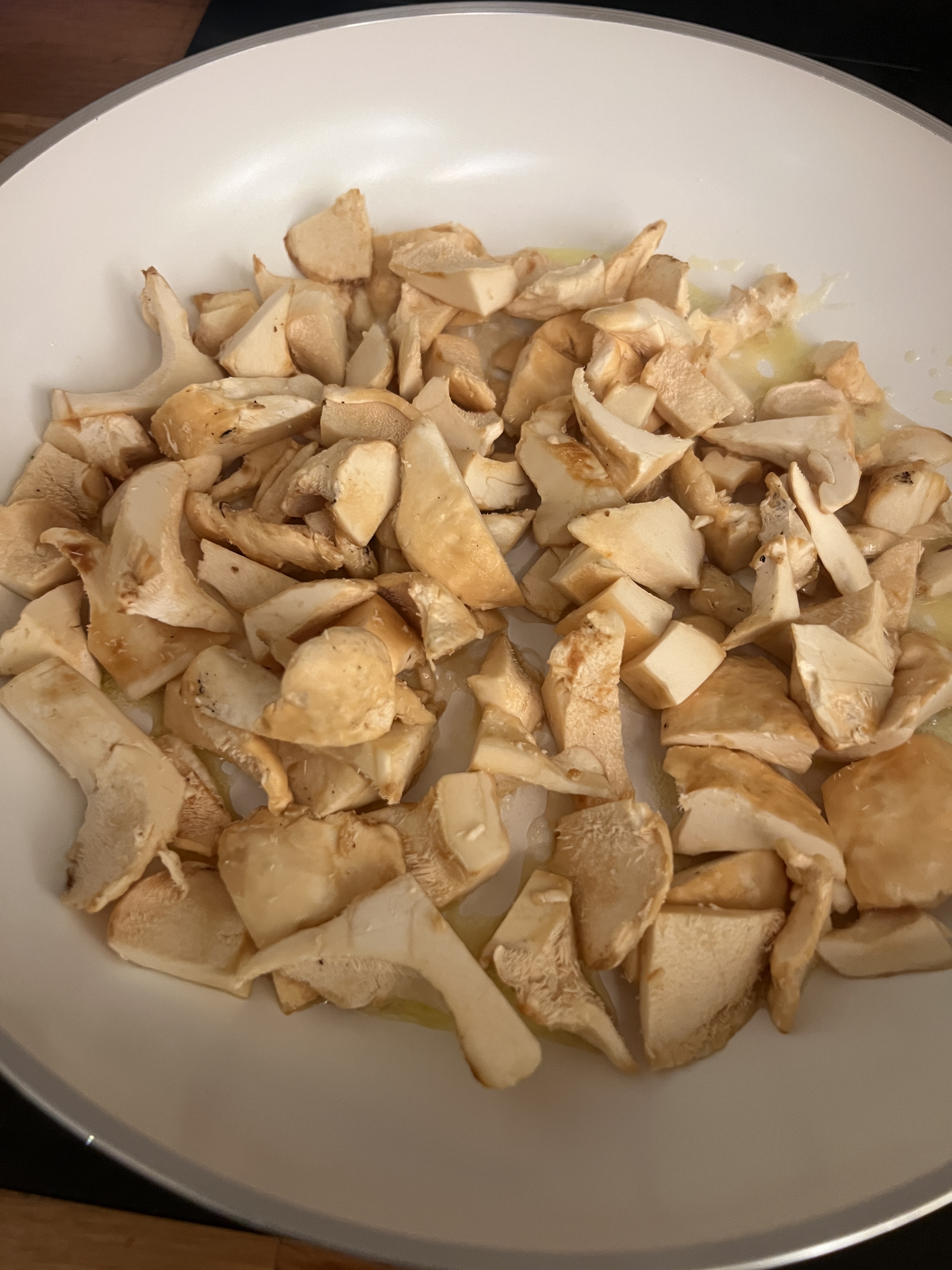 • ca. 250โ€“300 g Semmelstoppelpilze (geputzt, grob zerteilt)